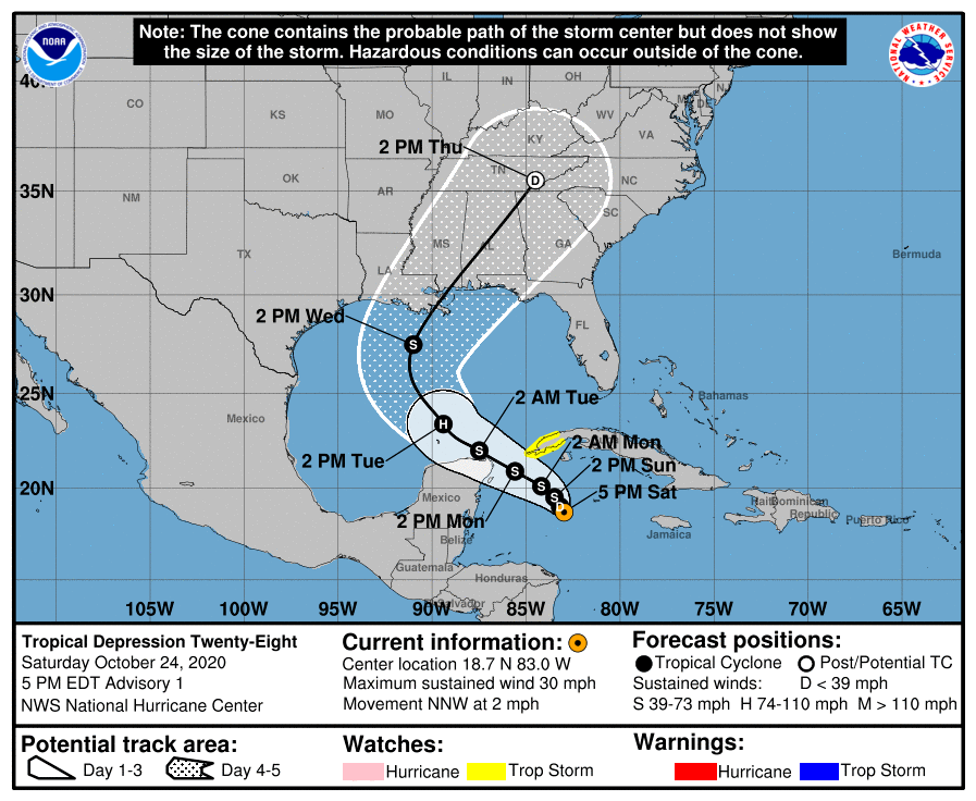 While I don’t attribute the following to not passing the exam, the preceding days were interesting and worth telling the story. Beginning on October 24, Hurricane Zeta set it’s sights on a Louisiana landfall.
